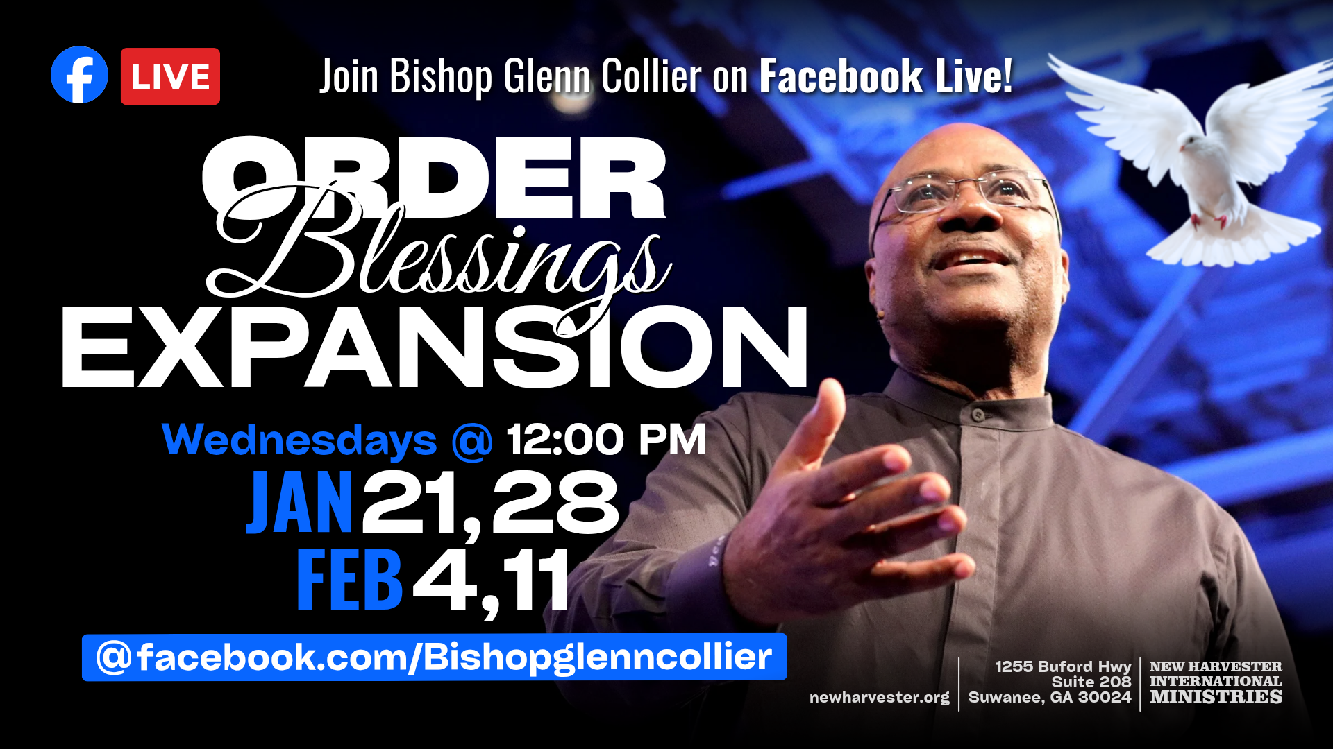 Establish God's divine order in your life, and experience the flow of blessings and expansion in 2026. Join Bishop Glenn Collier on Facebook Live for an informative, educational, and biblically based 4-part series every Wednesday at noon Eastern Time, commencing on Wednesday, January 21st. Save the dates! Enhance your knowledge, apply biblical principles, grow spiritually, and allow God to utilize your gifts, ultimately experiencing the flow of blessings and expansion. Share with others!